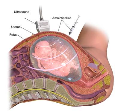 What is amniocentesis? Amniocentesis is a procedure where a small sample of amniotic fluid (the fluid that surrounds the baby) is removed and tested. Usually only about 1-2 tablespoons are taken. Amniotic fluid contains fetal cells: skin cells and others cells that are naturally shed by the baby. When is an amniocentesis carried out? The ideal timing is between 15 and 18 weeks to allow opportunity for the procedure, results and decision making. An amniocentesis can, however, be performed any time after 15 weeks. |